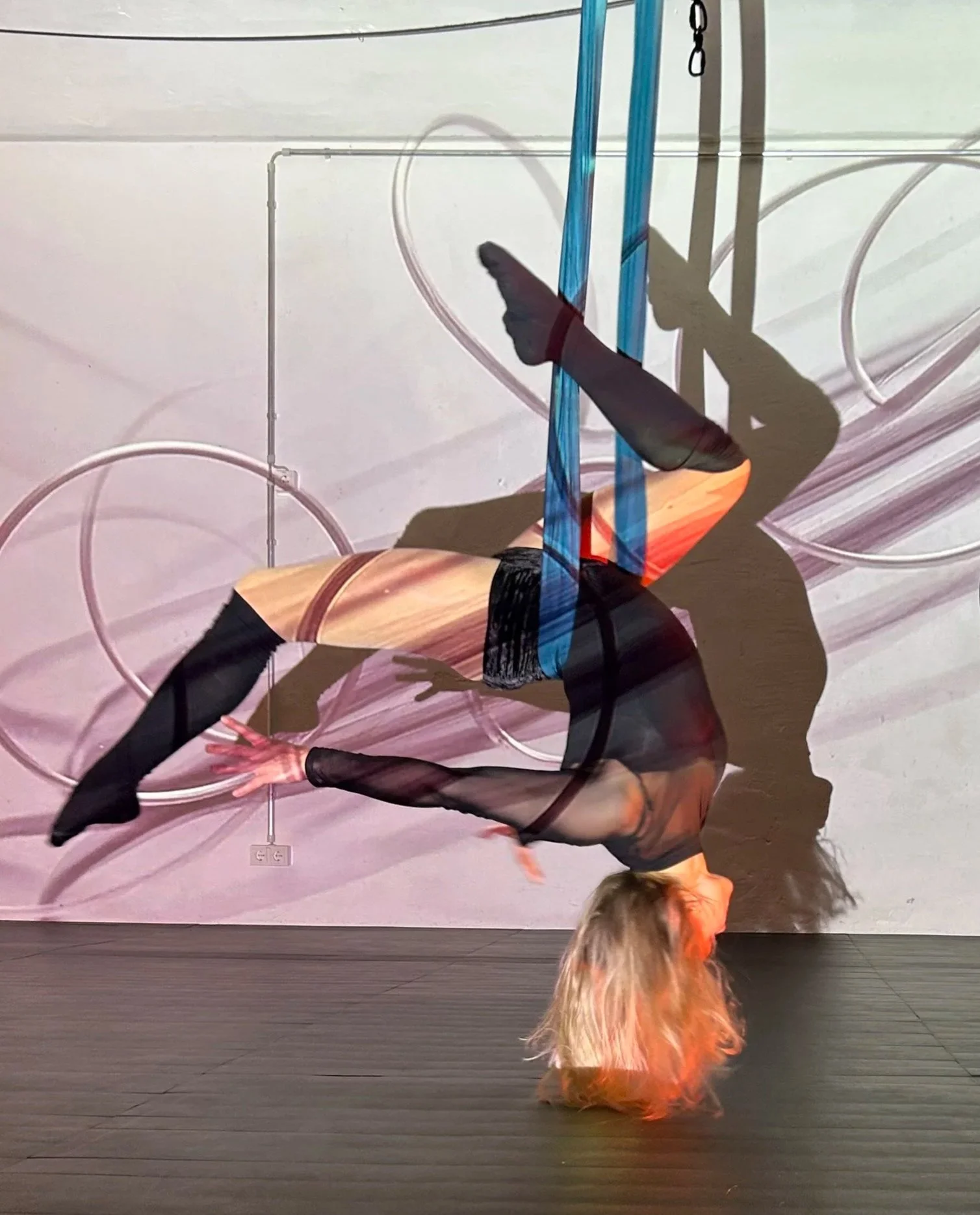 Afterwards Svenja, aerial artist, actress and founder of luftseide will join in for an Aerial Move & Flow workshop, where she’ll guide you through a series of tricks and flowing sequences on the hammock or hoop. You’ll be able to move freely in conversation with the projections, explore your own fluidity, and capture photos or videos of your practice along the way.